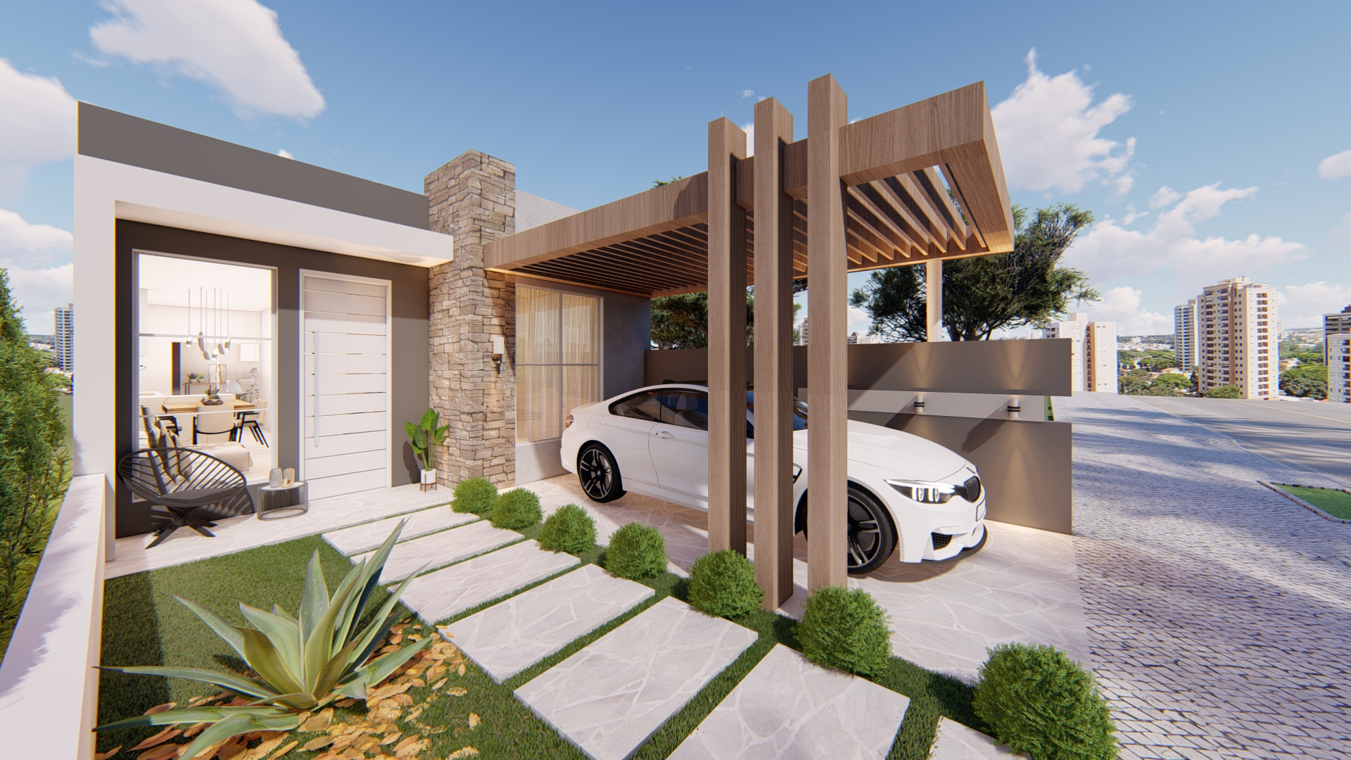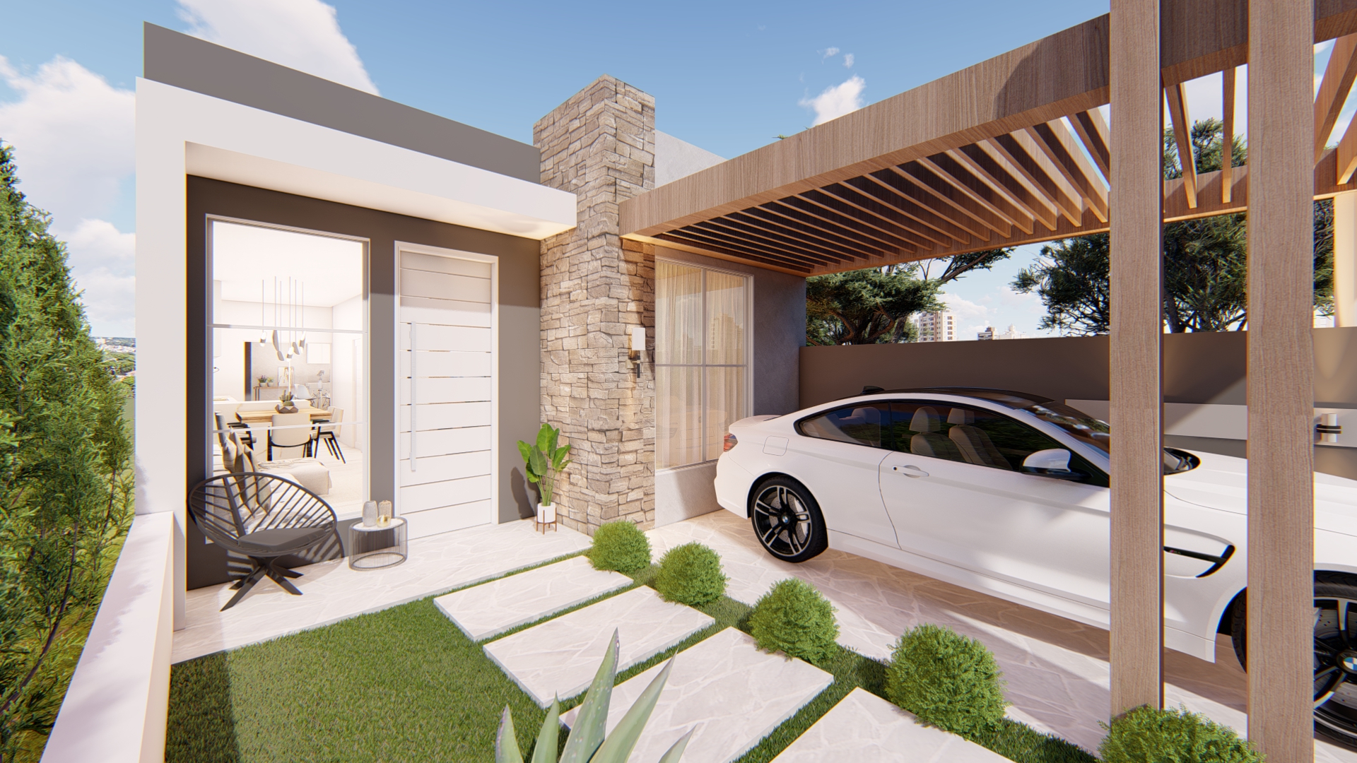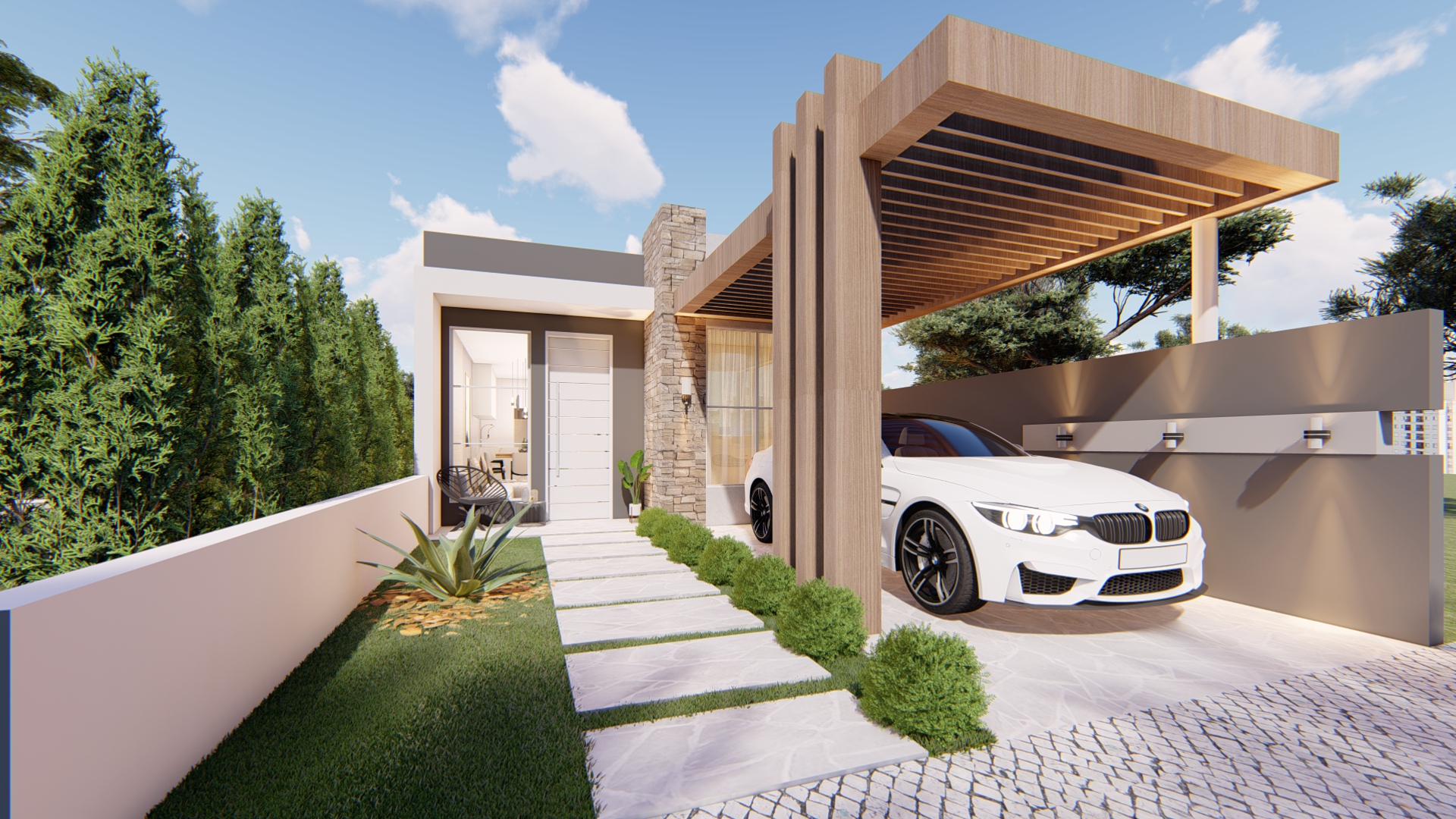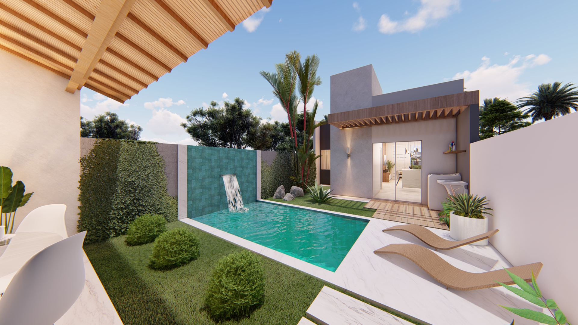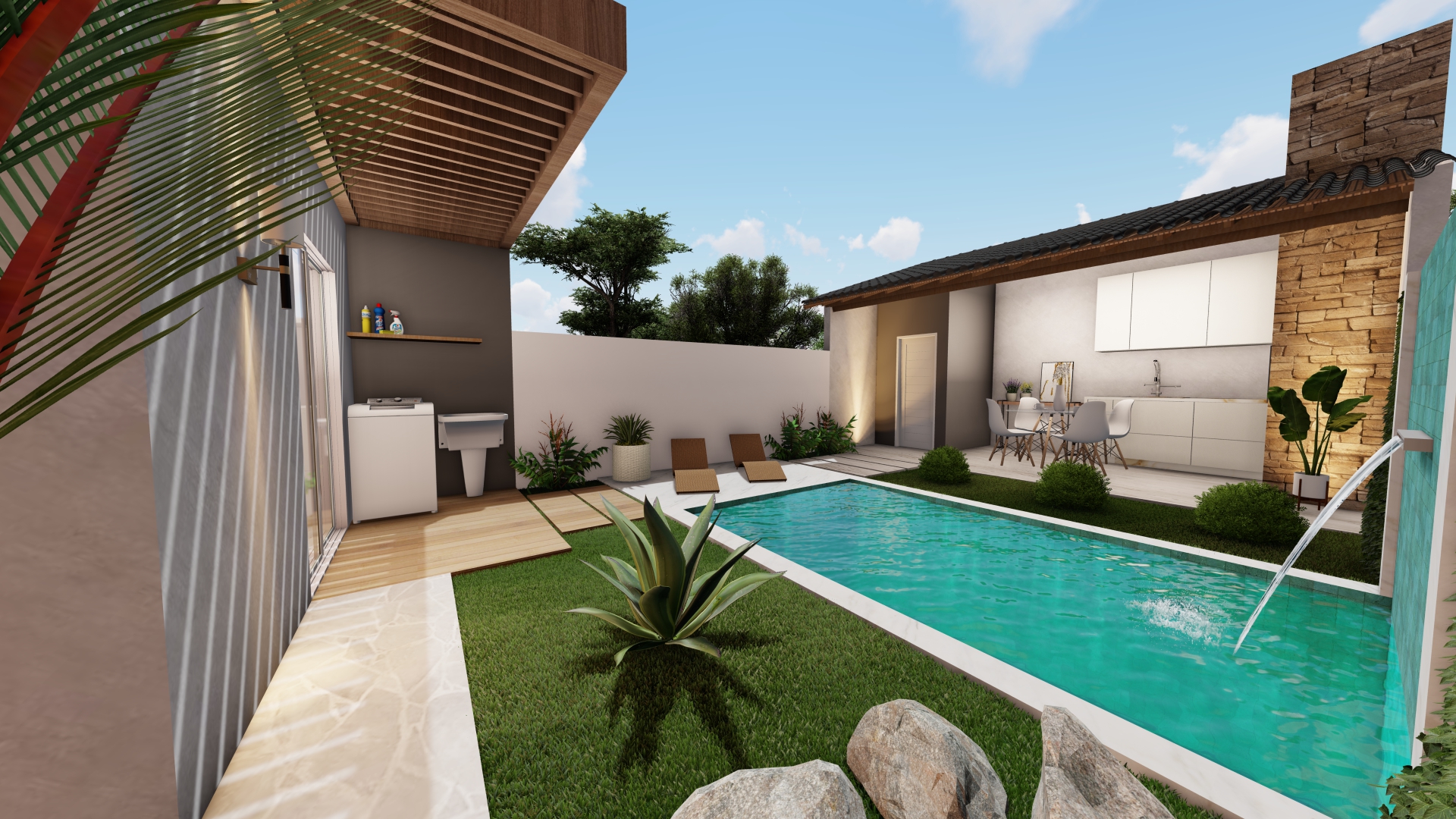 Projeto arquitetônico moderno de casa térrea, desenvolvido especialmente para terrenos estreitos. A planta contempla ambientes integrados com living espaçoso, cozinha americana e uma elegante área de lazer com piscina e espaço gourmet. Ideal para quem busca estilo, conforto e lazer em um espaço compacto.